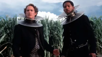 Kevin Kline und Will Smith mit Magnet-Kragen in "Wild Wild West", einer Western-Komödie in Cattlepunk-Ästhetik aus dem Jahr 1999.Bildrechte: imago images/Ronald Grant