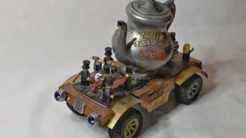 Die frühe Lego-Liebe zahlt sich aus. „Coppelianisches Aufgussgetränkservierbehältnisrennvehikel“ – Falco hat die Band COPPELIUS in dieser Konstruktion verewigt. Natürlich fahrtüchtig. Die Jungs waren begeistert und haben ihm das Objekt signiert. Foto: Benjamin Weinkauf