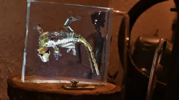 Wenn der Reporter den Künstler nicht ablenkt, ist Epoxidharz eine glasklare Sache. Ein Gecko, gebaut aus Fundstücken. Foto: Benjamin Weinkauf