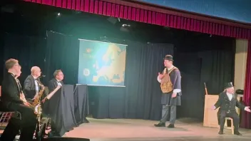 Die Bläserklassen der Jahrgänge 5 und 6 sowie die „Ehemaligen“ aus der Stufe 7 waren als Zuschauer dabei und wurden für eine Unterrichtsstunde zu Reisenden quer durch den Kontinent.
